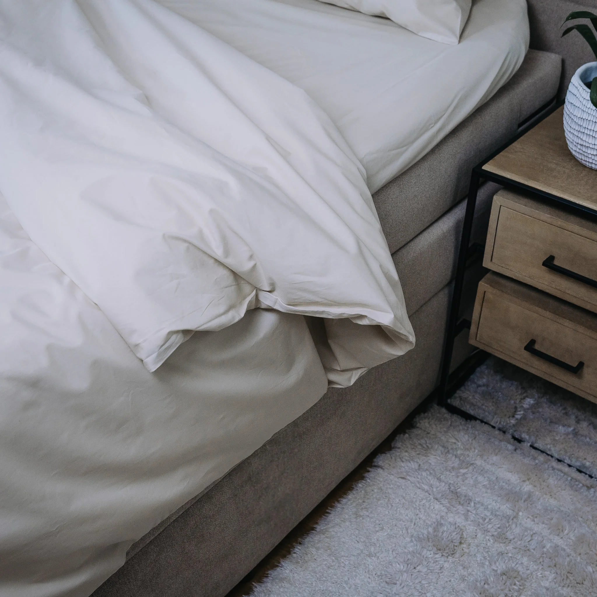Soft yet crisp, it’s made for those who love a weightier, more luxurious feel — with a refined matte finish and elegant drape that gets softer wash after wash. Delivered in a reusable fabric bag made from the same percale material — simple, sustainable, and plastic-free.